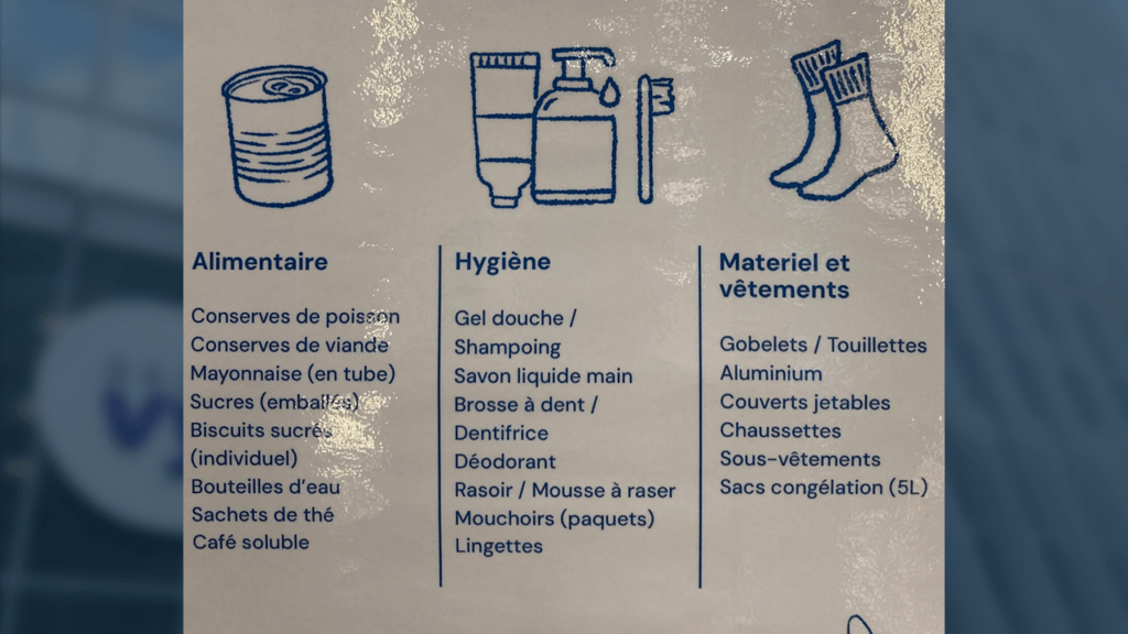 L’association nous invite dès maintenant et sur toute la période à donner des vêtements, des produits d’hygiène et des denrées alimentaires qu’elle viendra collectée toutes les semaines.