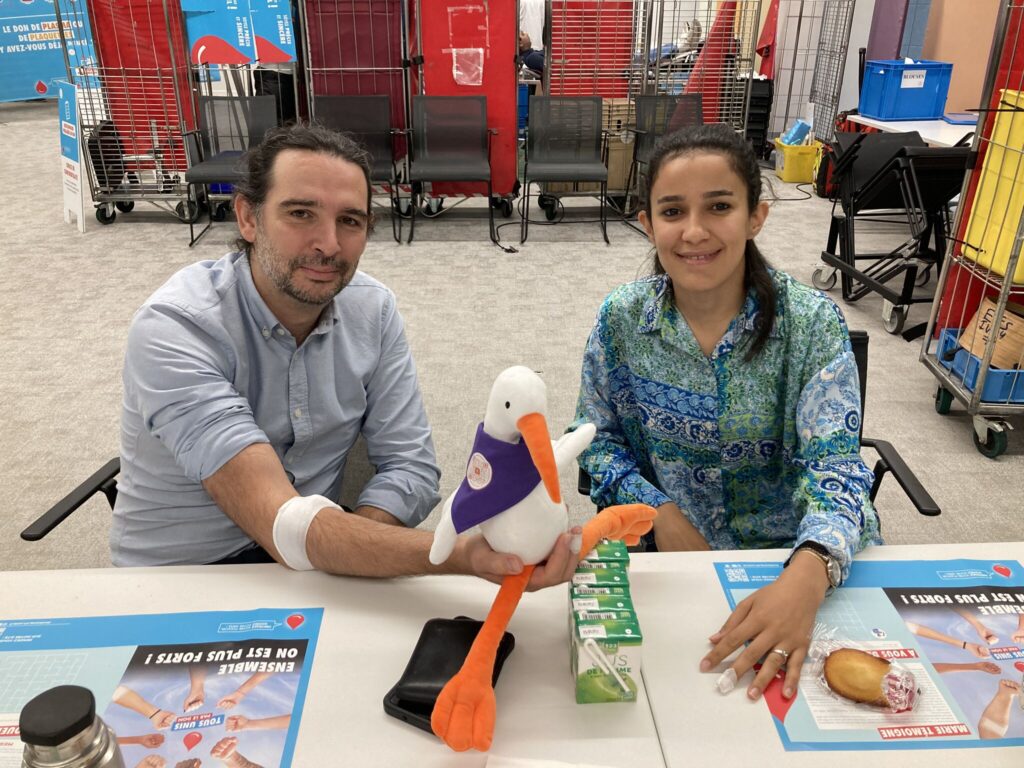 Un petit jeu pour clôturer ce post : saurez-vous reconnaître tous les « couples de collation » pris en photo avec la cigogne ? Même l’équipe EFS s’est prêtée au jeu, en mode Dr House, avec Delphine PADIOLLEAU dans le rôle de la patiente !