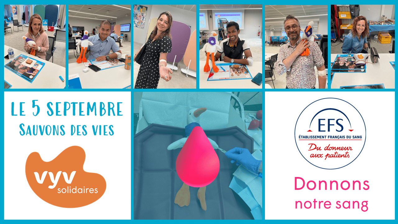 Salariés et élus du Groupe VYV, voisins ou de passage au Vyllage, vous êtes invités à donner votre sang le 5 septembre.