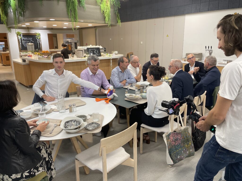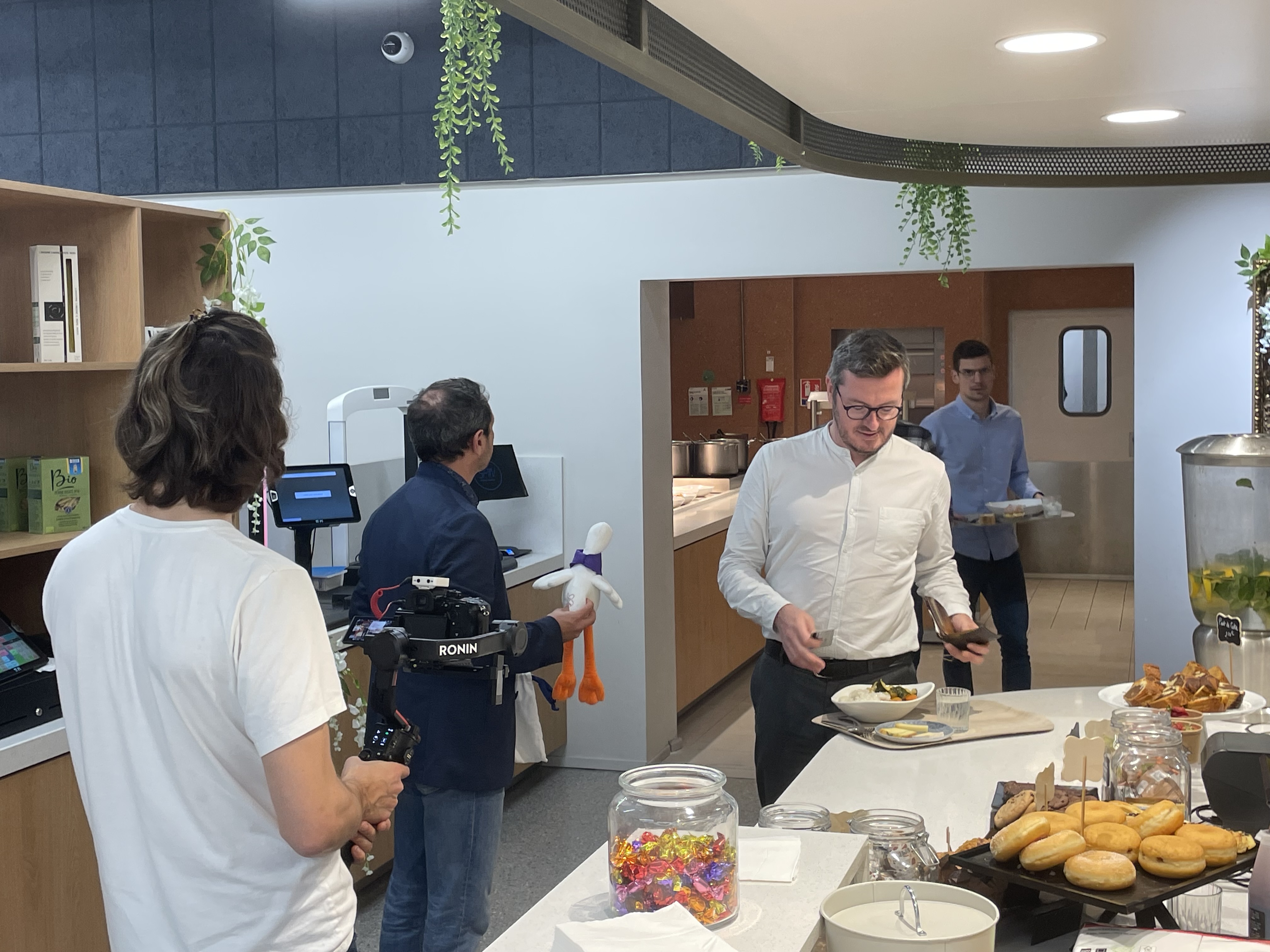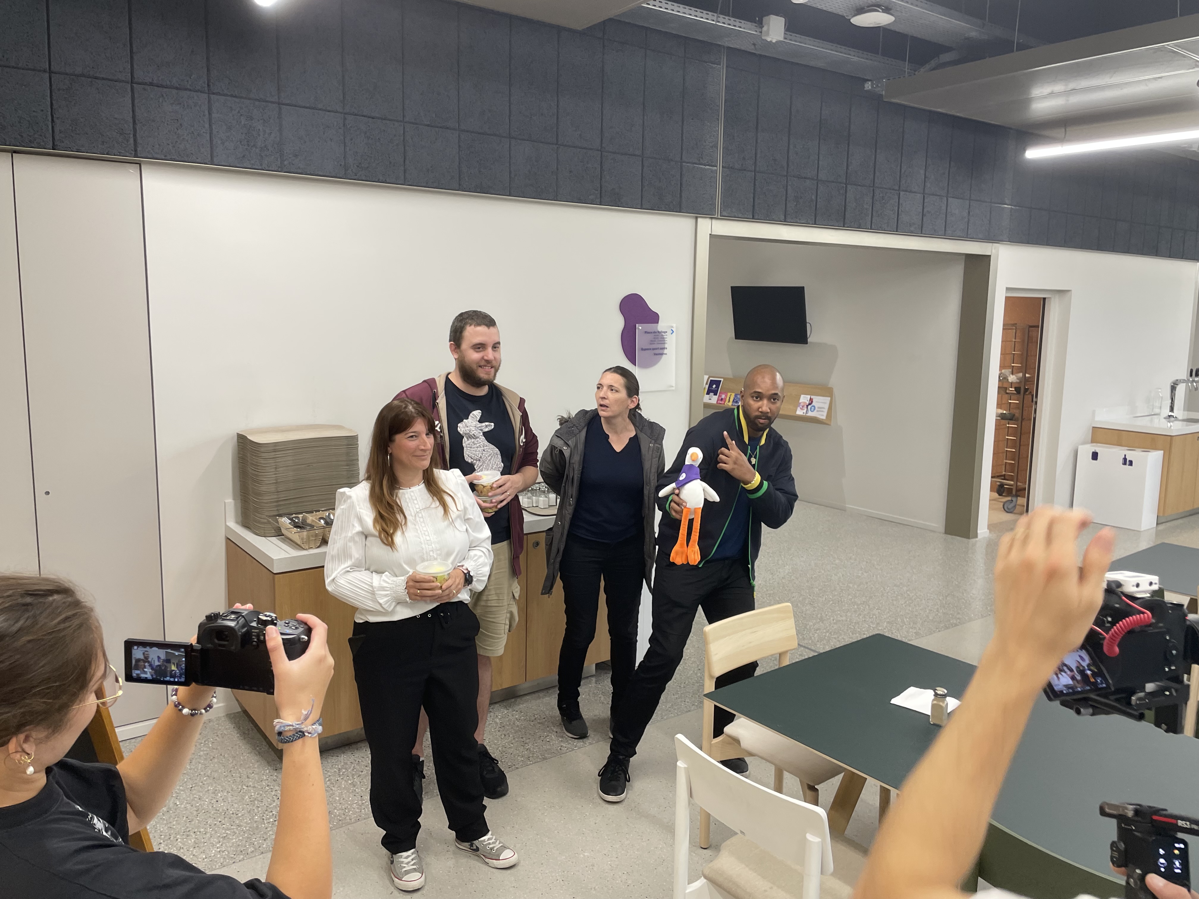 Ce tournage a été l’occasion de présenter la cigogne Youri aux collaborateurs du Vyllage. On en a profité pour faire quelques plans séquences dans la bonne humeur collective du restaurant d’entreprise.
