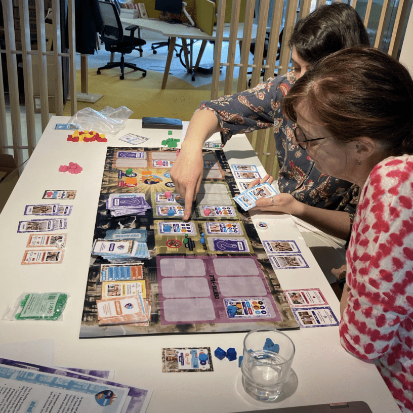 Venez découvrir Cité Coeur, un jeu de plateau et de cartes VYV Solidaires. A la tête d’une équipe citoyenne disposée à lutter contre l’isolement social, les joueurs doivent aider les habitants de la ville et les connecter entre eux. Un jeu qui nécessite 2 à 5 joueurs ou 5 équipes.