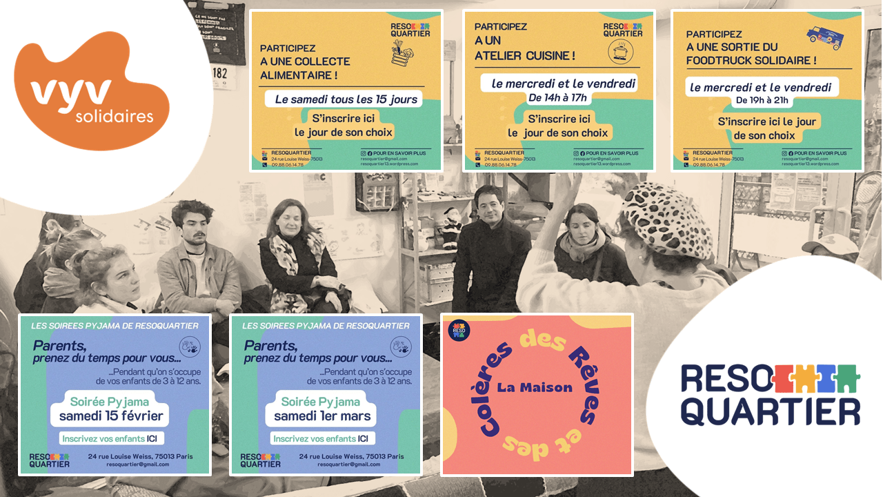 Automne 2024, alors que nous construisions un jeu de piste des acteurs de l’ESS de Paris 13e, une association, jusqu’alors hors de nos radars, accepte de se prêter au jeu : RESOQUARTIER. Notre partenariat depuis n’a cessé de s’étoffer jusqu’à proposer des offres de bénévolat sur la plateforme. Nous vous invitons dès à présent à les découvrir.
